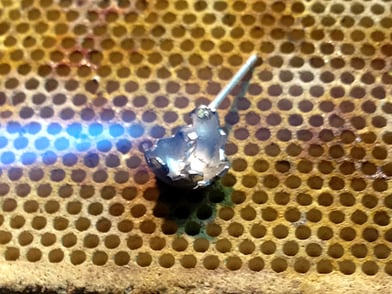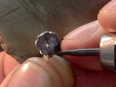 この時、前回ポイントの部分(石座側に余分に出したポスト部分)に先ほどのロウ材を乗せると溶接がしやすく、溶接面も綺麗に仕上がります!